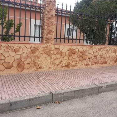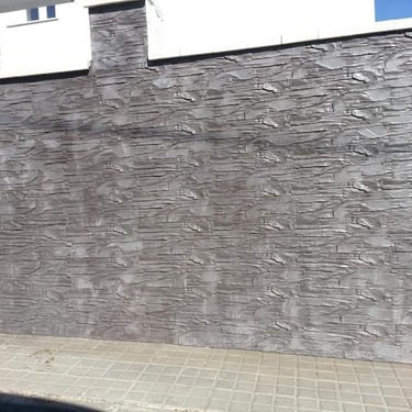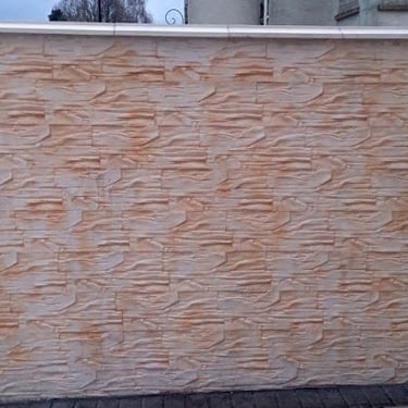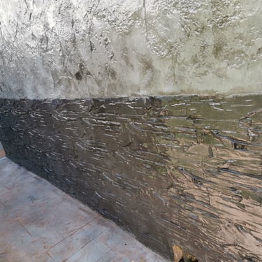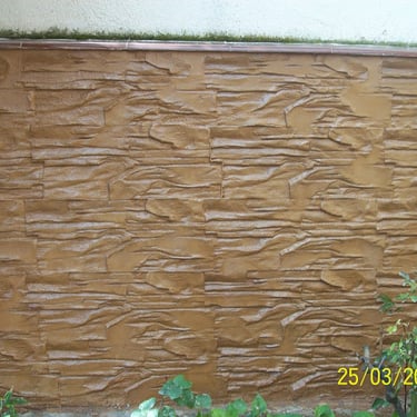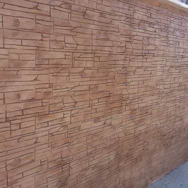 Le béton imprimé mural se réalise à l’aide d’un mortier spécialement adapté à cet usage. Sa formulation lui donne la consistance nécessaire pour une application verticale dans des épaisseurs pouvant aller jusqu’à 1- 2 cm.